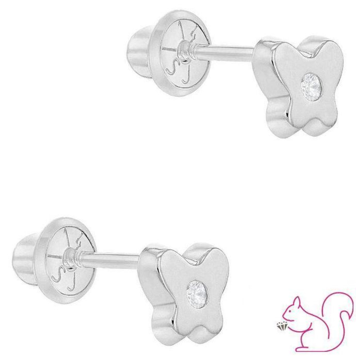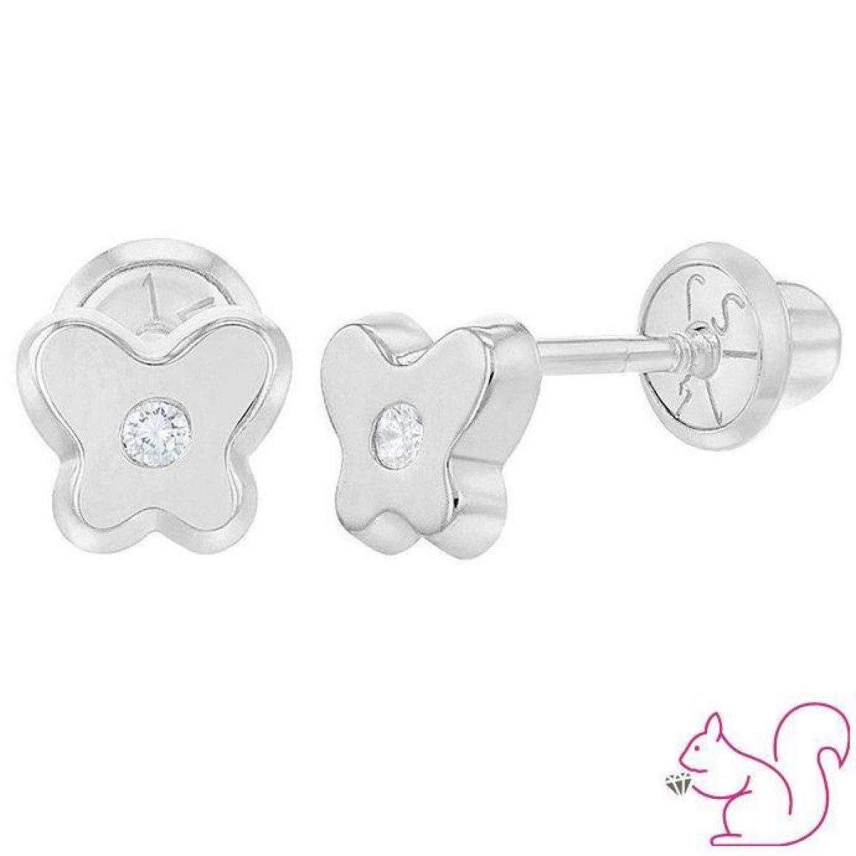 Utolsó darab – csapj le rá most! Ez a finom kidolgozású 14 karátos fehér arany pillangó fülbevaló kedves és elegáns választás kisbabák és kislányok számára. Az apró pillangó forma és a csillogó kövek játékos megjelenést adnak az ékszernek, ezért sok család választja keresztelő ajándéknak vagy egy kisbaba első fülbevalójaként.