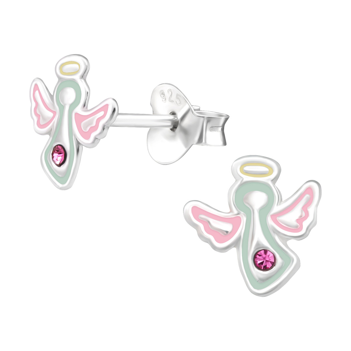 Angyal lányos fülbevaló, stift, színes, 925 ezüst