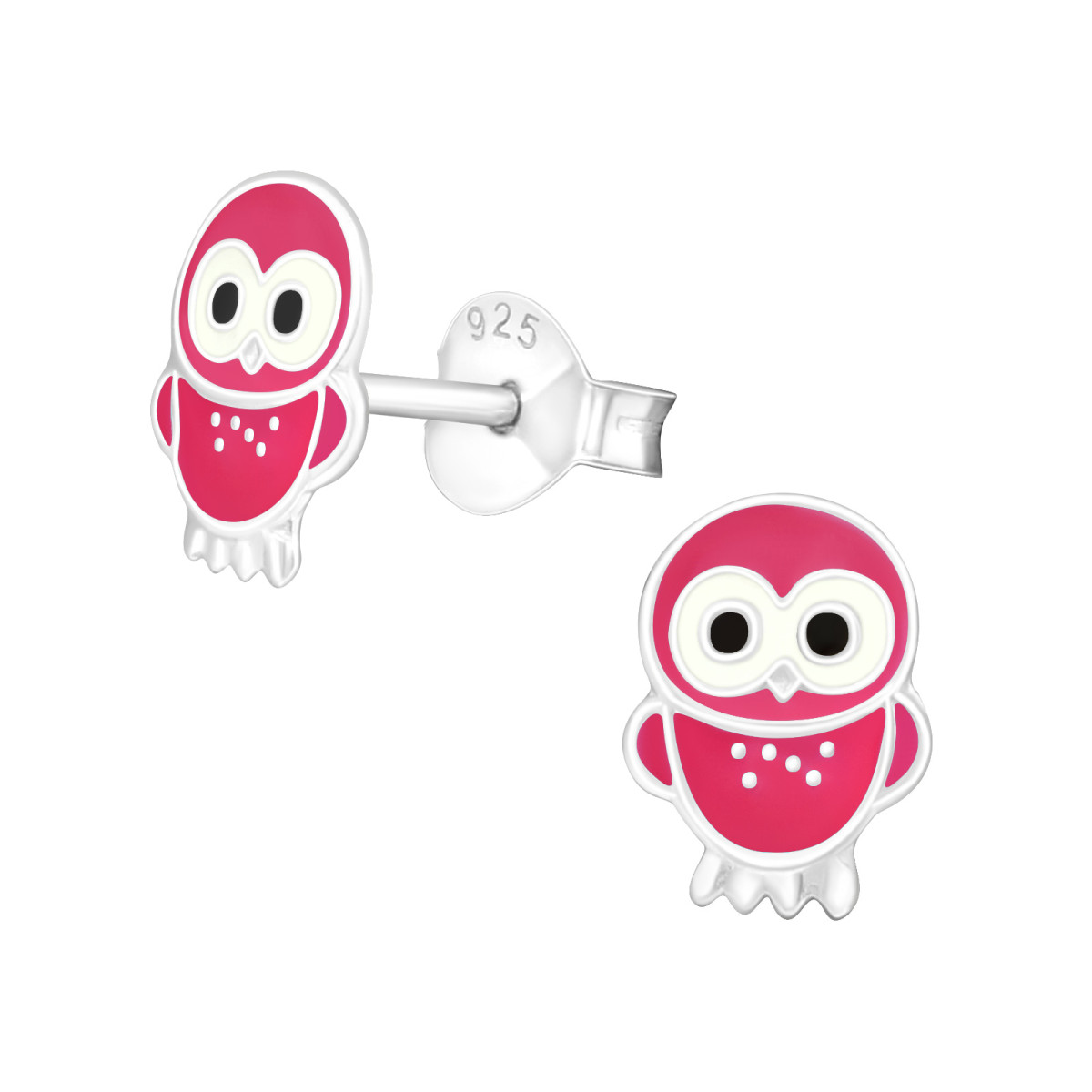 Bagoly, pink kislány fülbevaló, stift, színes, 925 ezüst