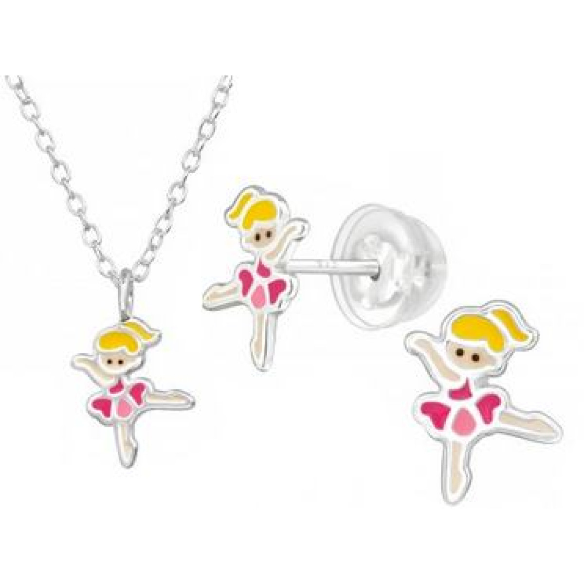 Balerinás Prémium Gyerek Ezüst ÉkszerSzett - Nyaklánc + Stift Fülbevaló