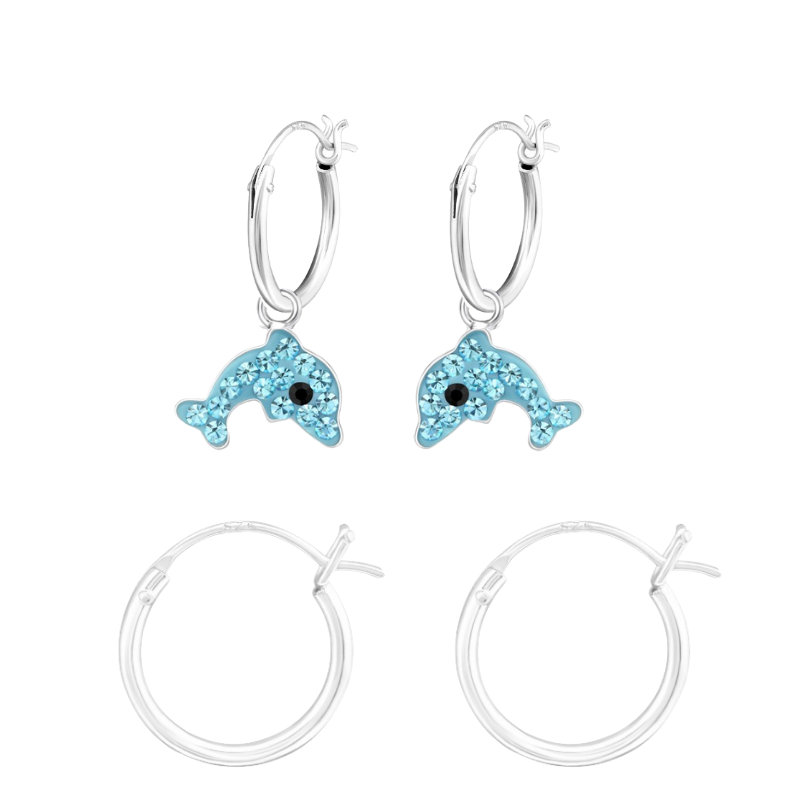Delfines fülbevaló, 1 pár, patentos karika, pink