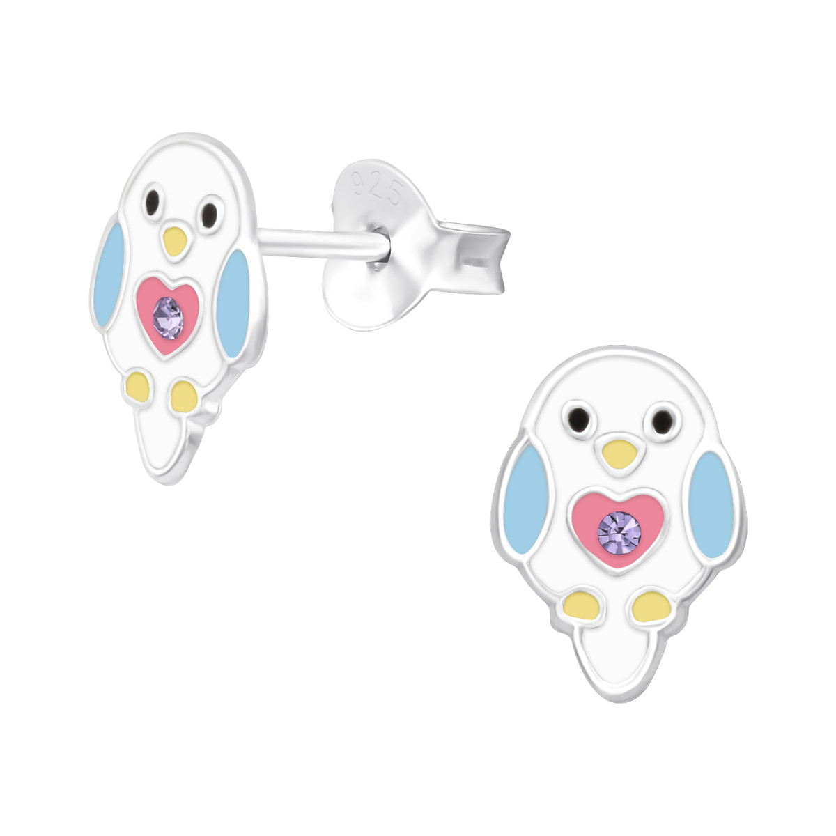 Madaras gyerek fülbevaló, stift, ezüst papagáj gyermek ékszer