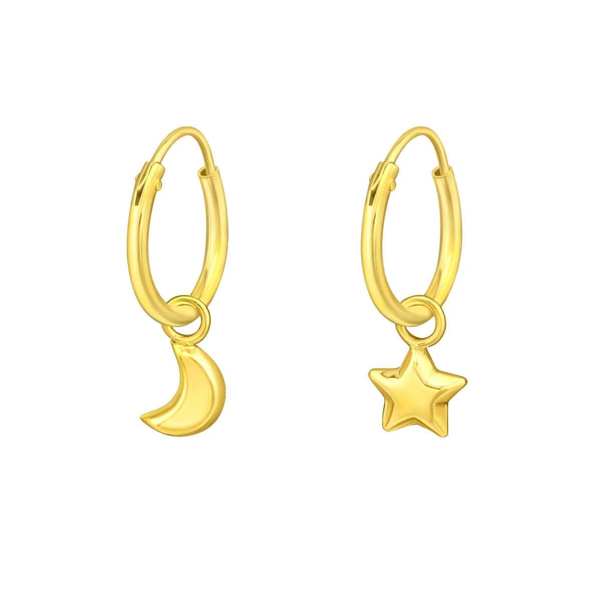 Hold és Csillag ezüst karika kislány fülbevaló, 24k aranyozott