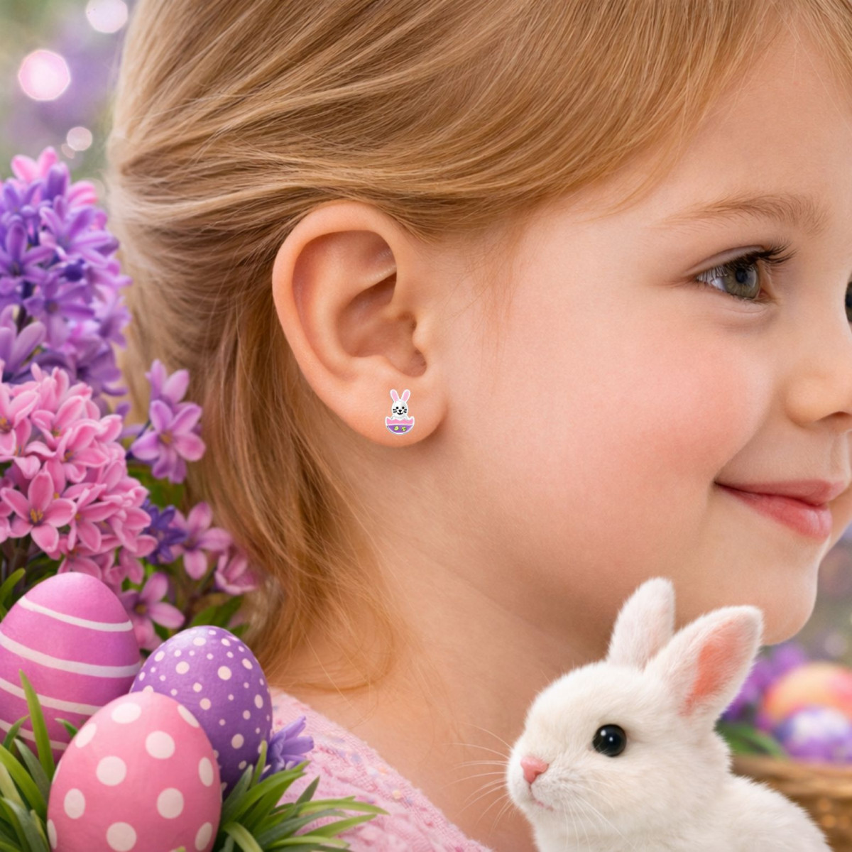 Húsvéti tojás és nyuszi gyerek fülbevaló, stift, színes, 925 ezüst