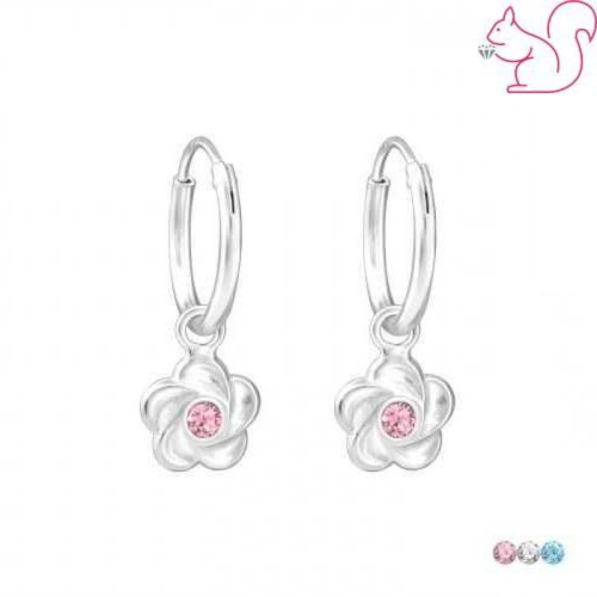 La Crystale igazi kristállyal kirakott virág medálos karika kislány fülbevaló, gyerek ékszer