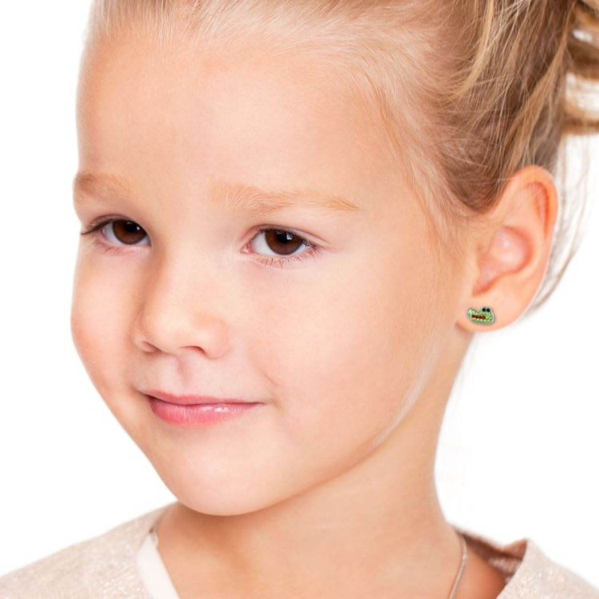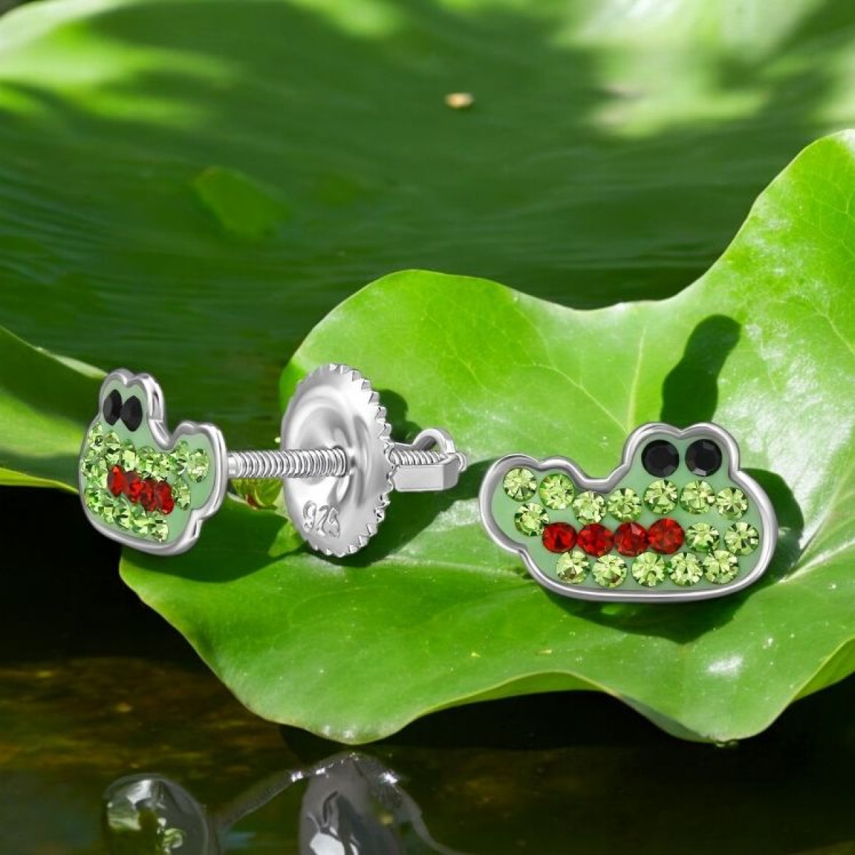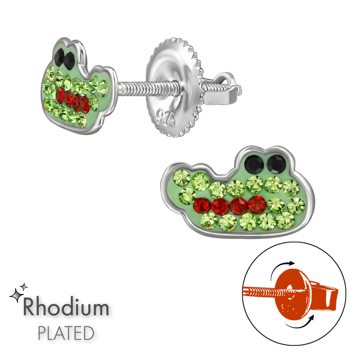 Krokodil csavaros záras stift gyerek fülbevaló, 925 ezüst