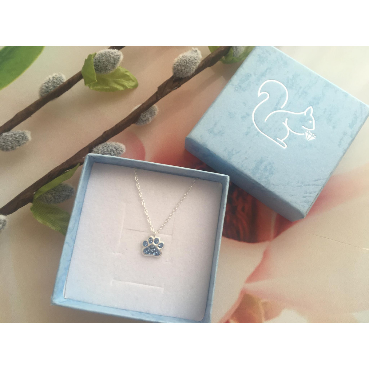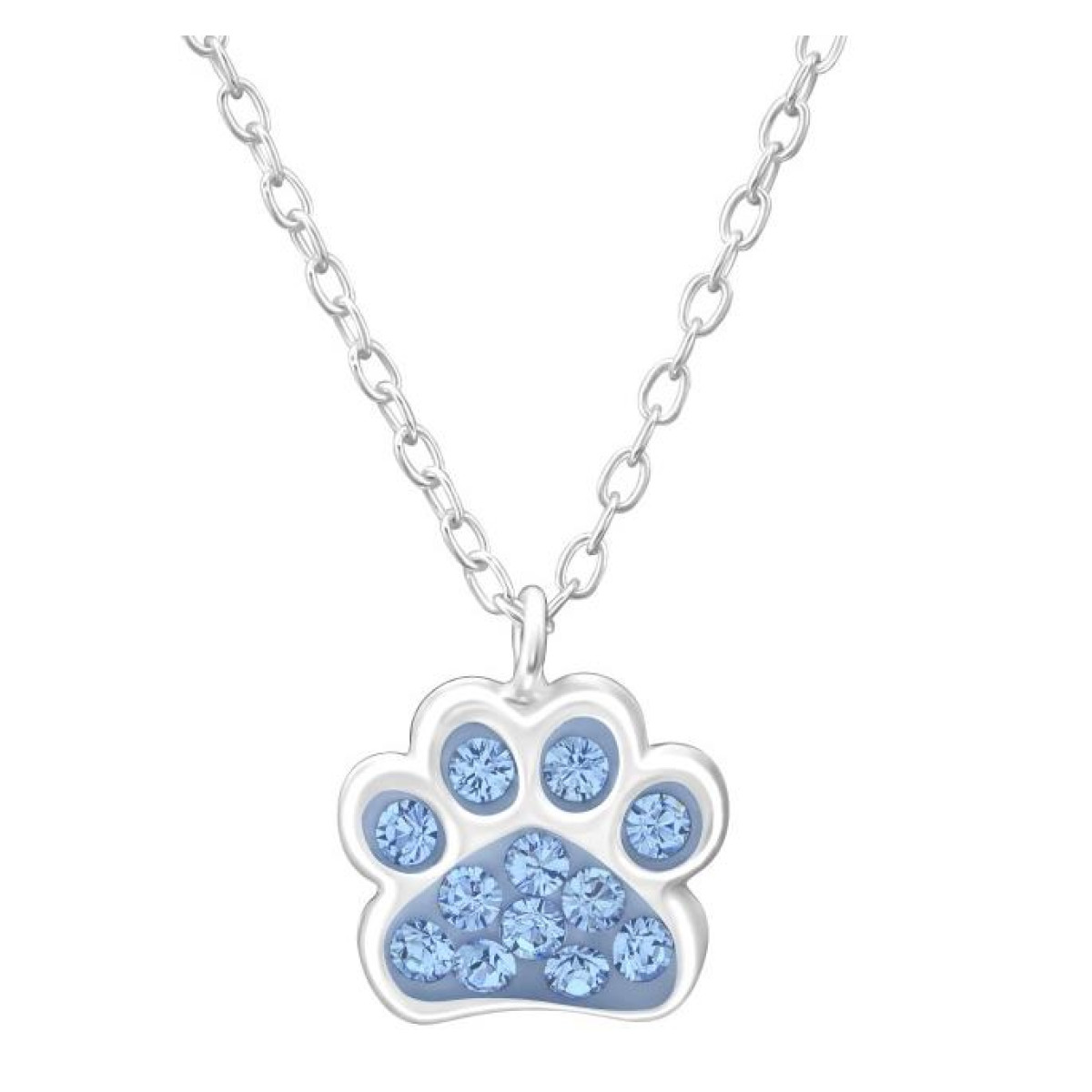 La Crystale ezüst gyerek nyaklánc, kutya mancs, kutyus lábnyom medál, világoskék