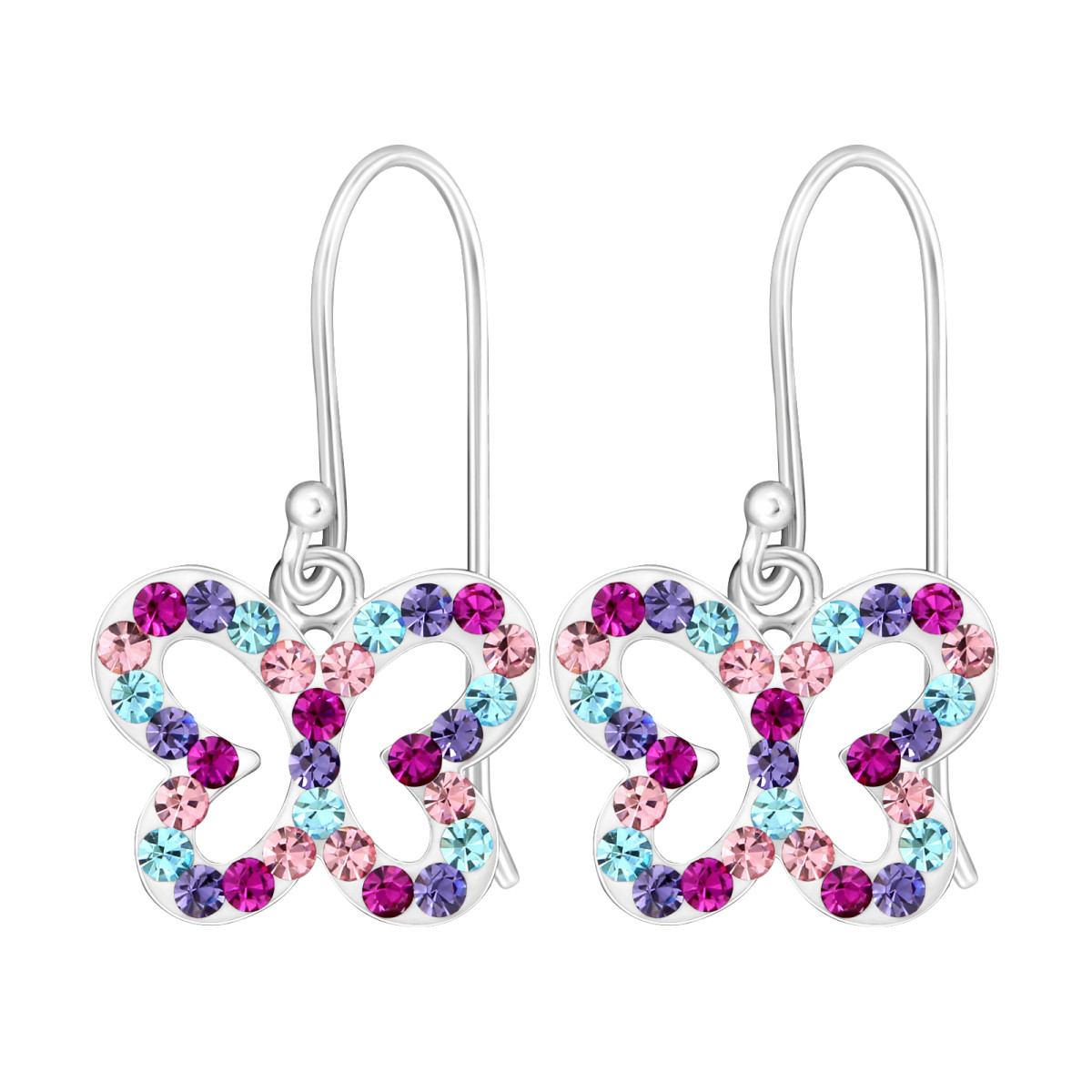 Színes kövekkel kirakott pillangó lány fülbevaló, akasztós, ezüst