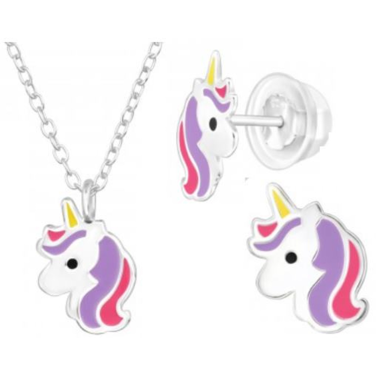 TAG-ek: Lila, Pink, Unikornis, Prémium, Gyerek, Ezüst, ÉkszerSzett, Nyaklánc, Stift, Fülbevaló