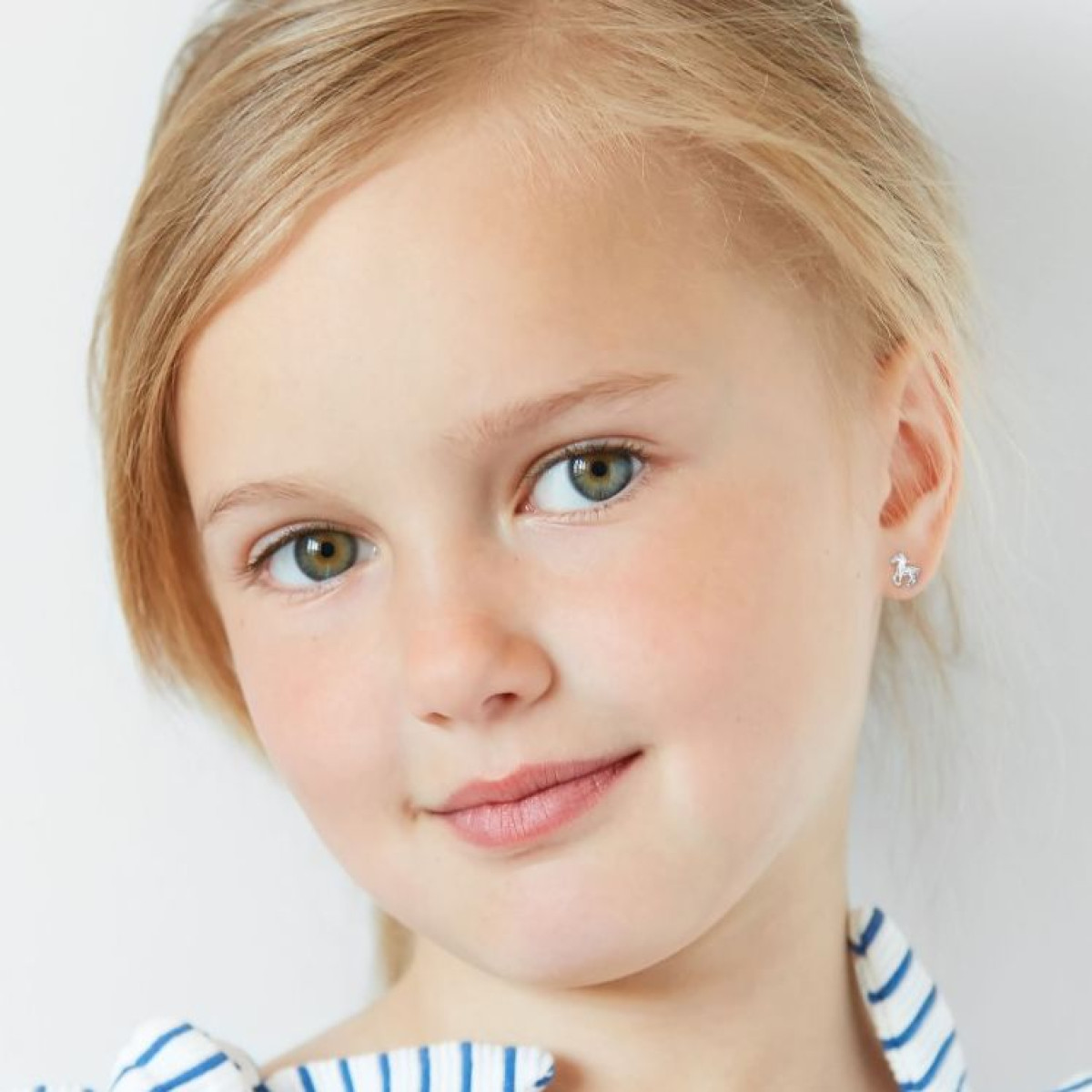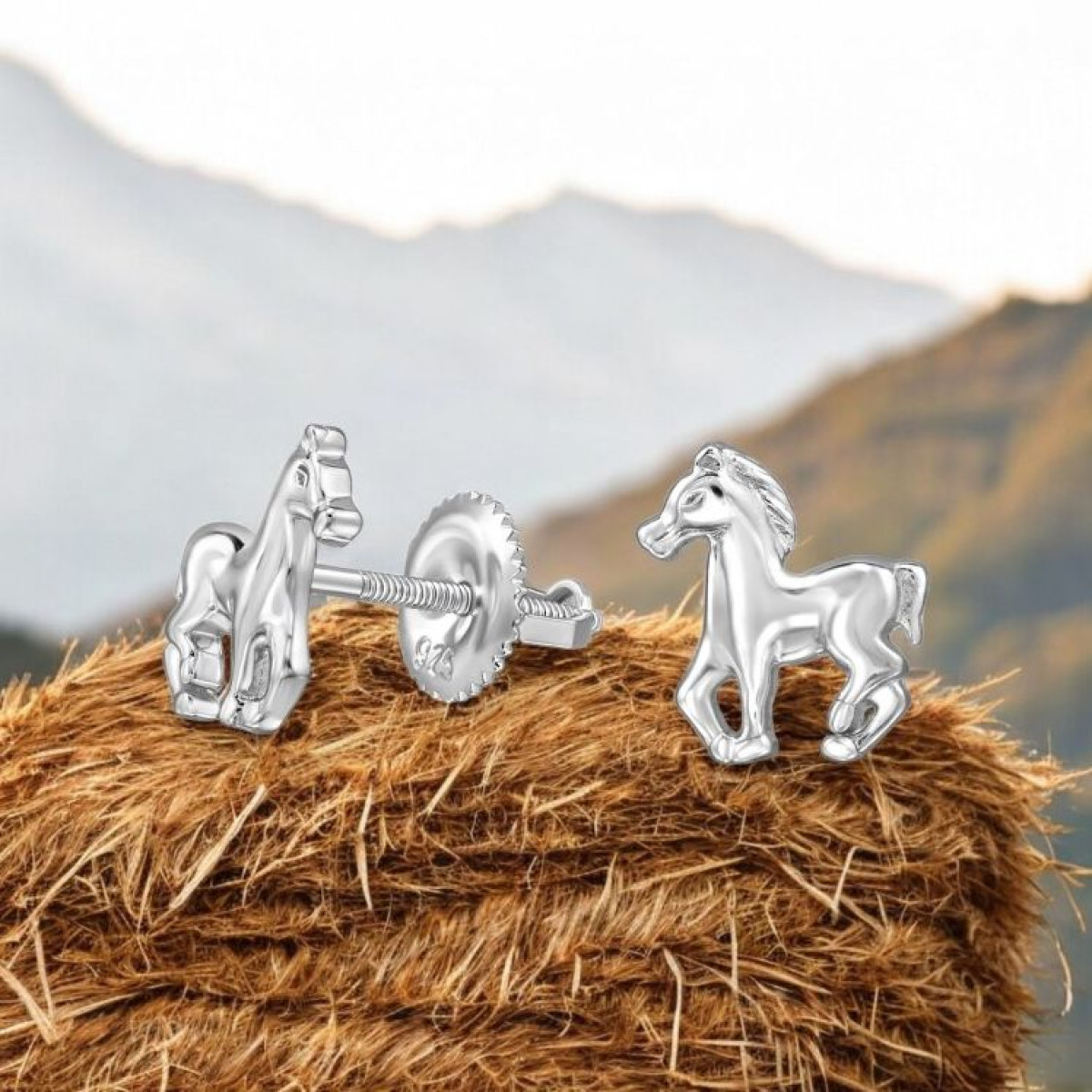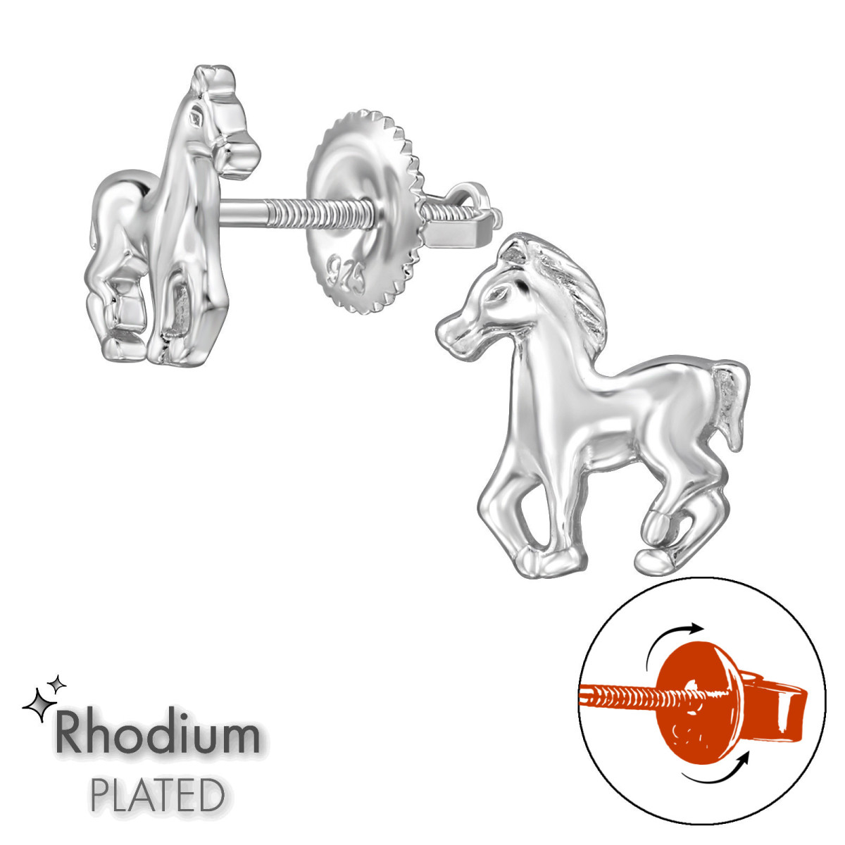 Lovas csavaros biztonságos stift gyerek fülbevaló, 925 ezüst