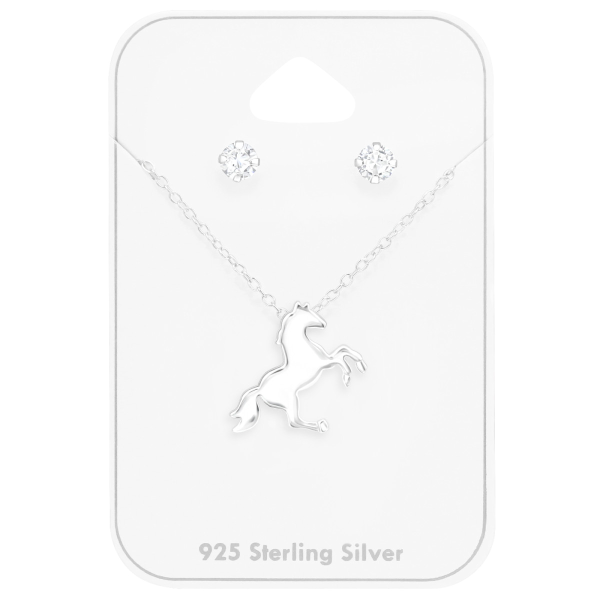 Lovas ezüst nyaklánc + kislány fülbevaló szett