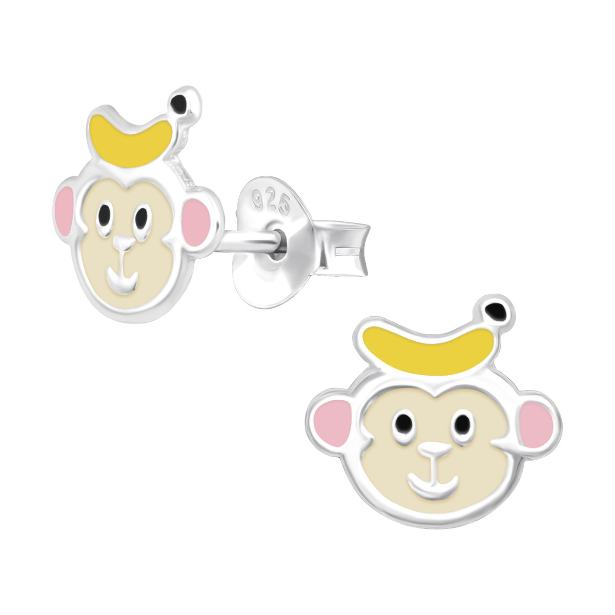 Majom banánnal lányos fülbevaló, stift, színes, 925 ezüst