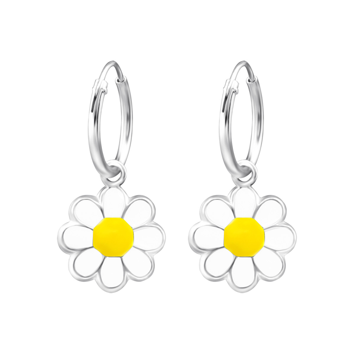 Margaréta virágos karika kislány fülbevaló, fehér, 10 mm