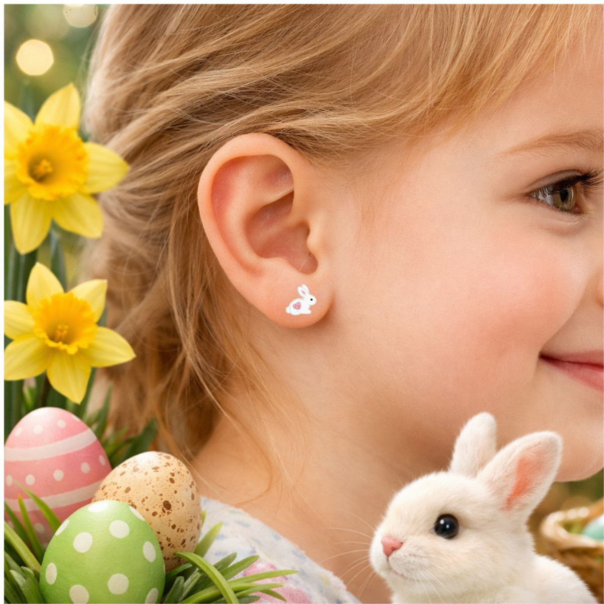 Nyuszi kislány fülbevaló, stift, színes, 925 ezüst