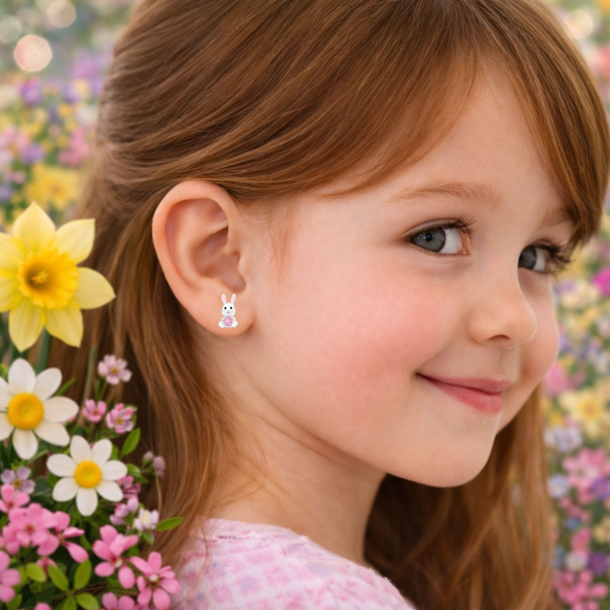 Nyuszis prémium ezüst stift gyerek fülbevaló