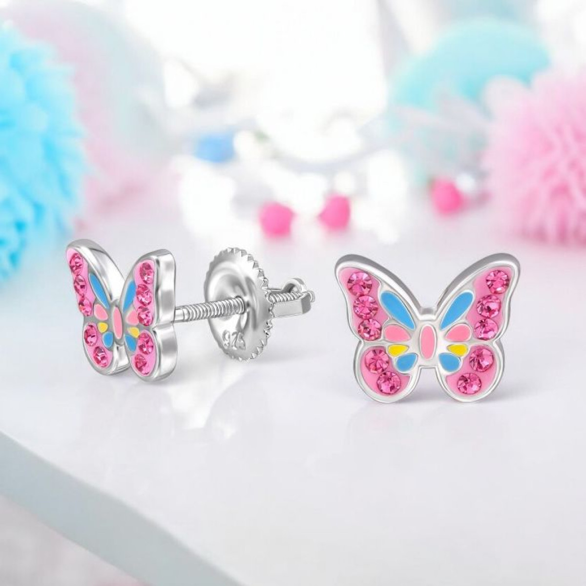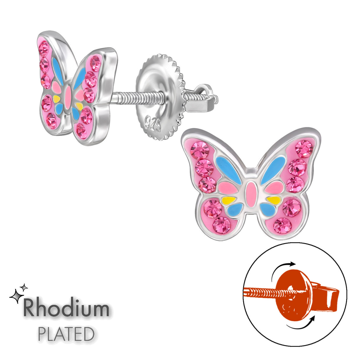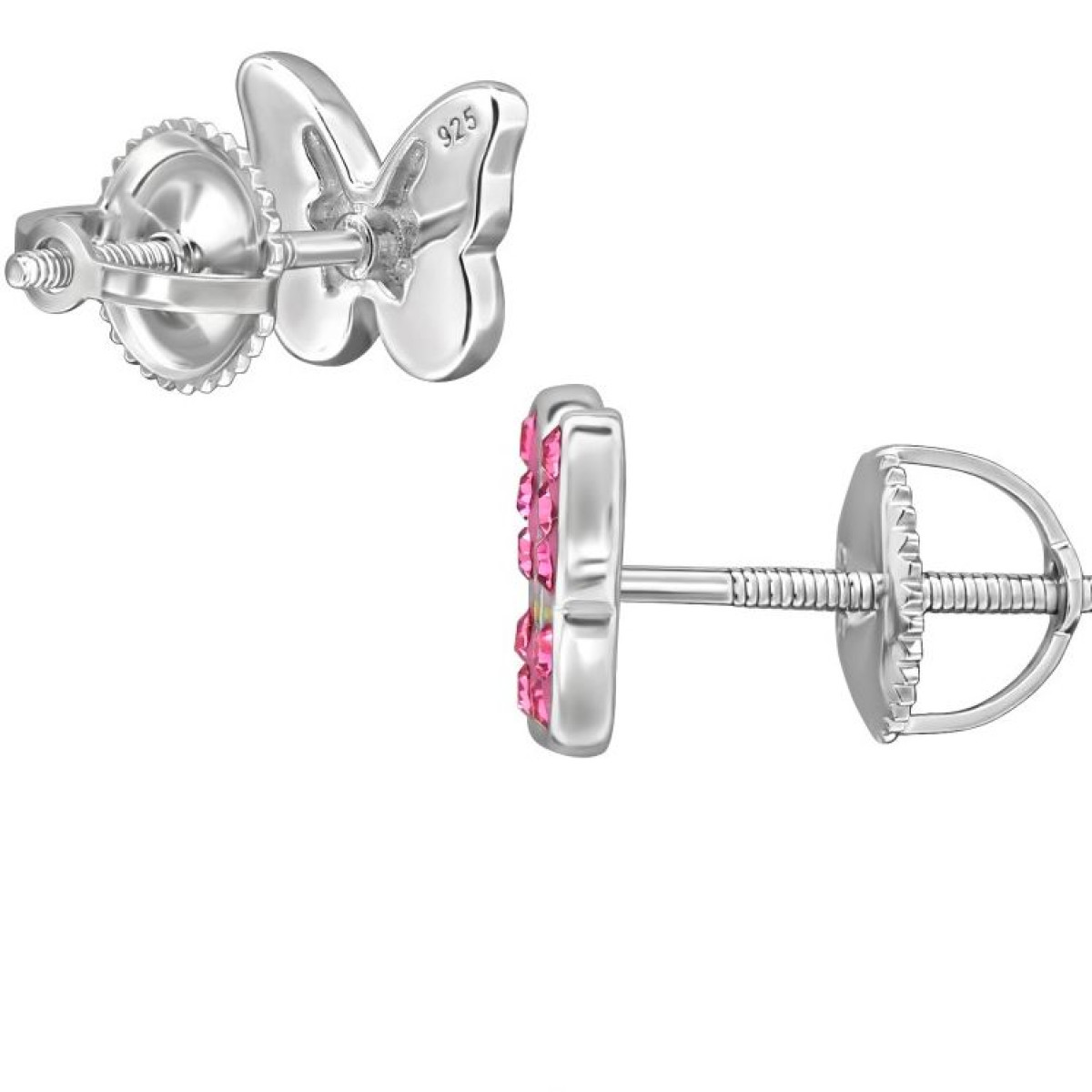 Pillangós csavaros biztonságos stift gyerek fülbevaló, 925 ezüst