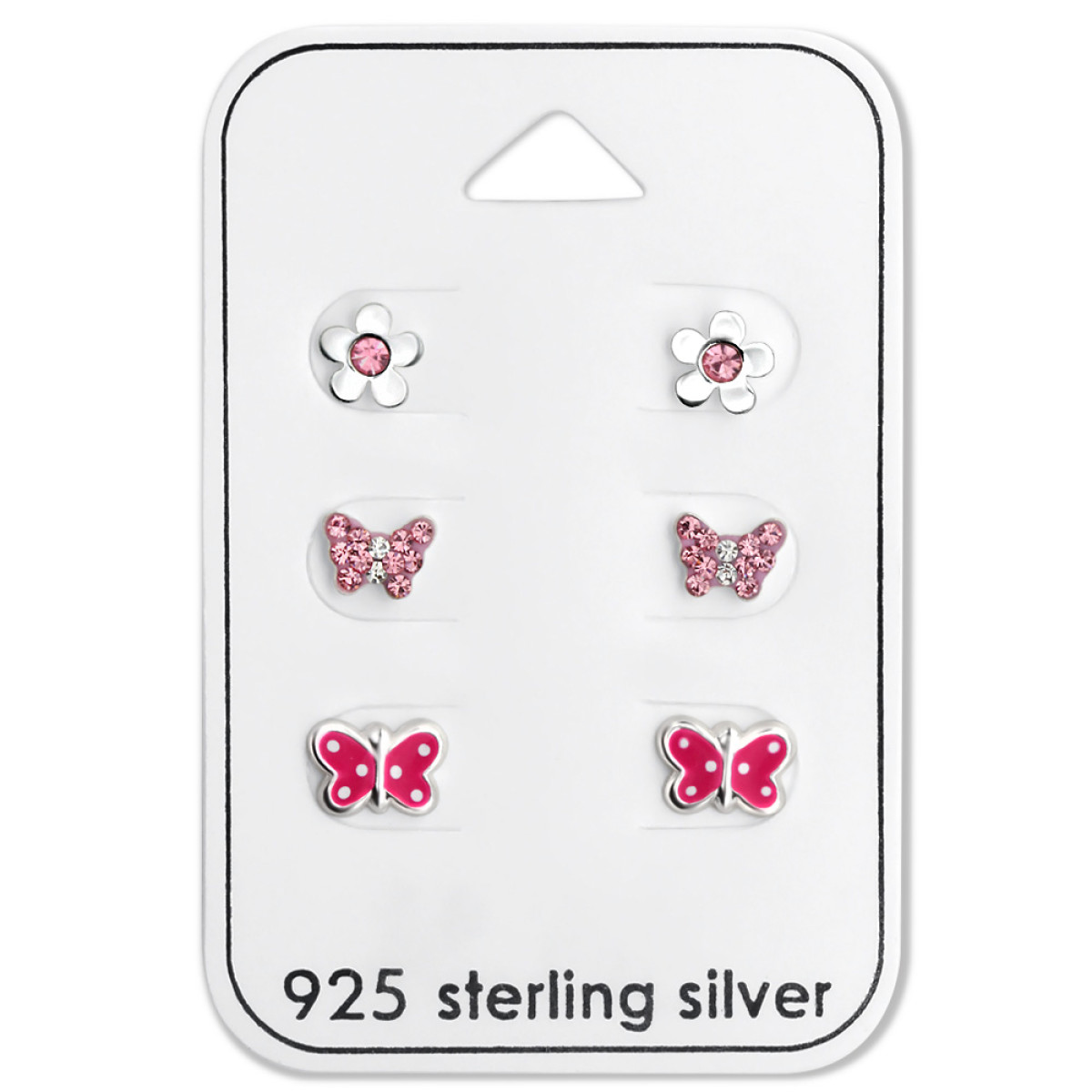 Lepkés, virágos kislány fülbevaló szett, ezüst