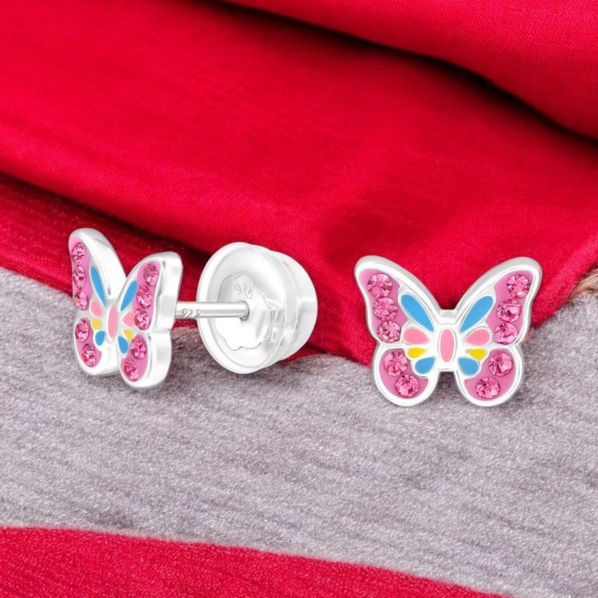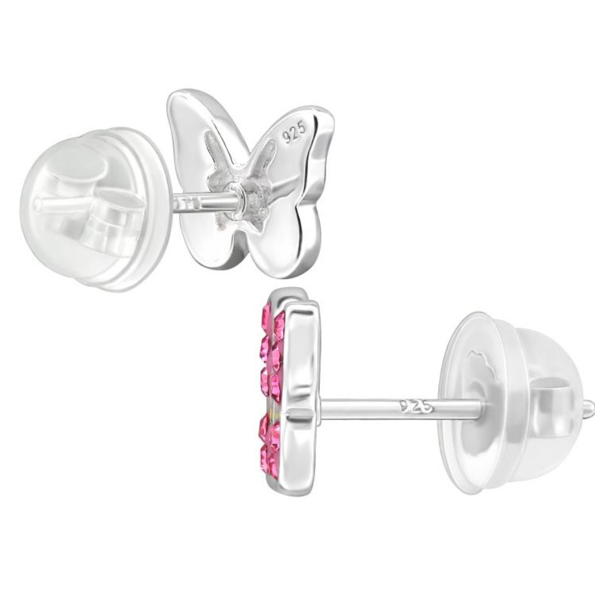 Pink pillangó prémium kristály ezüst stift gyerek fülbevaló
