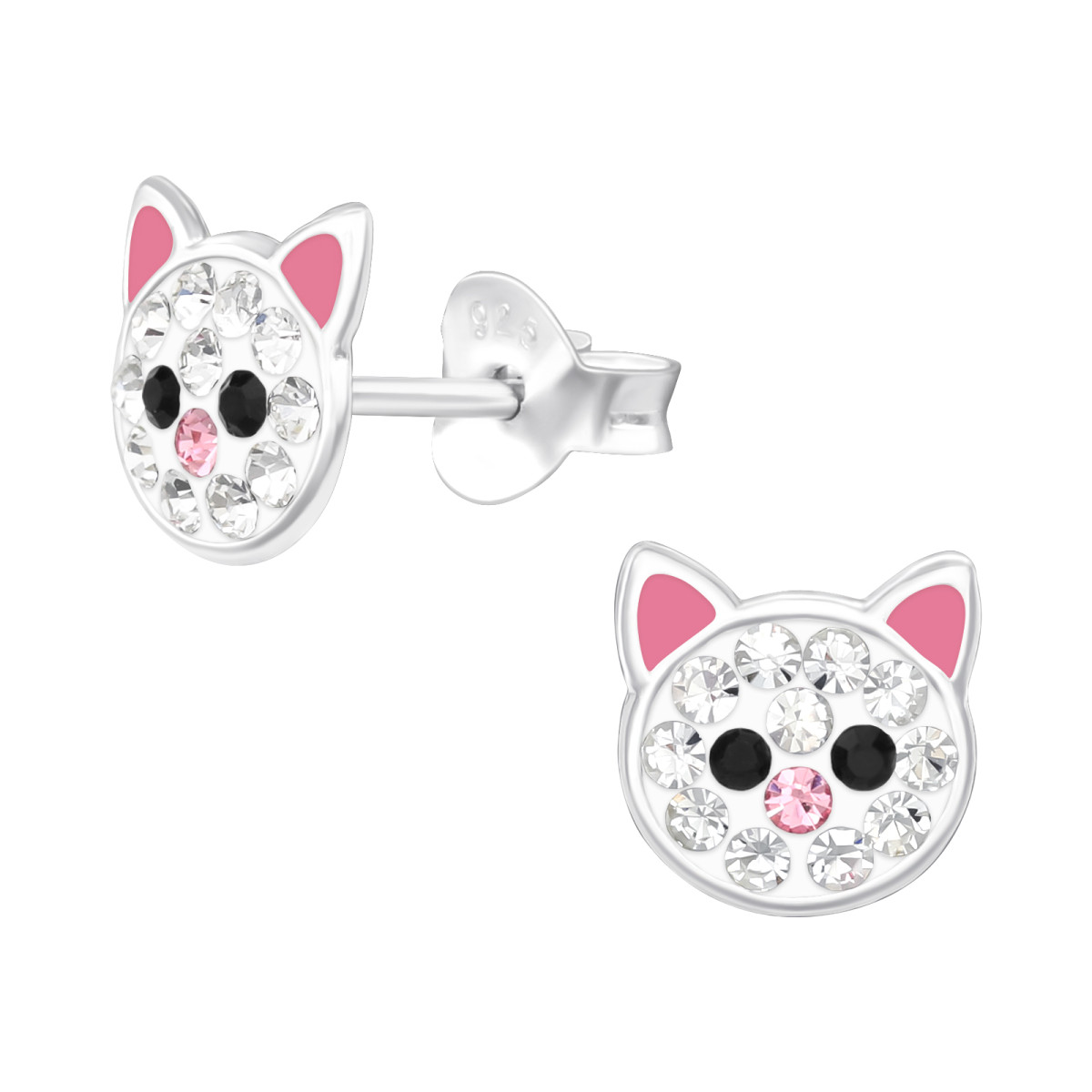 Színes köves macskafej stift ezüst kislány fülbevaló