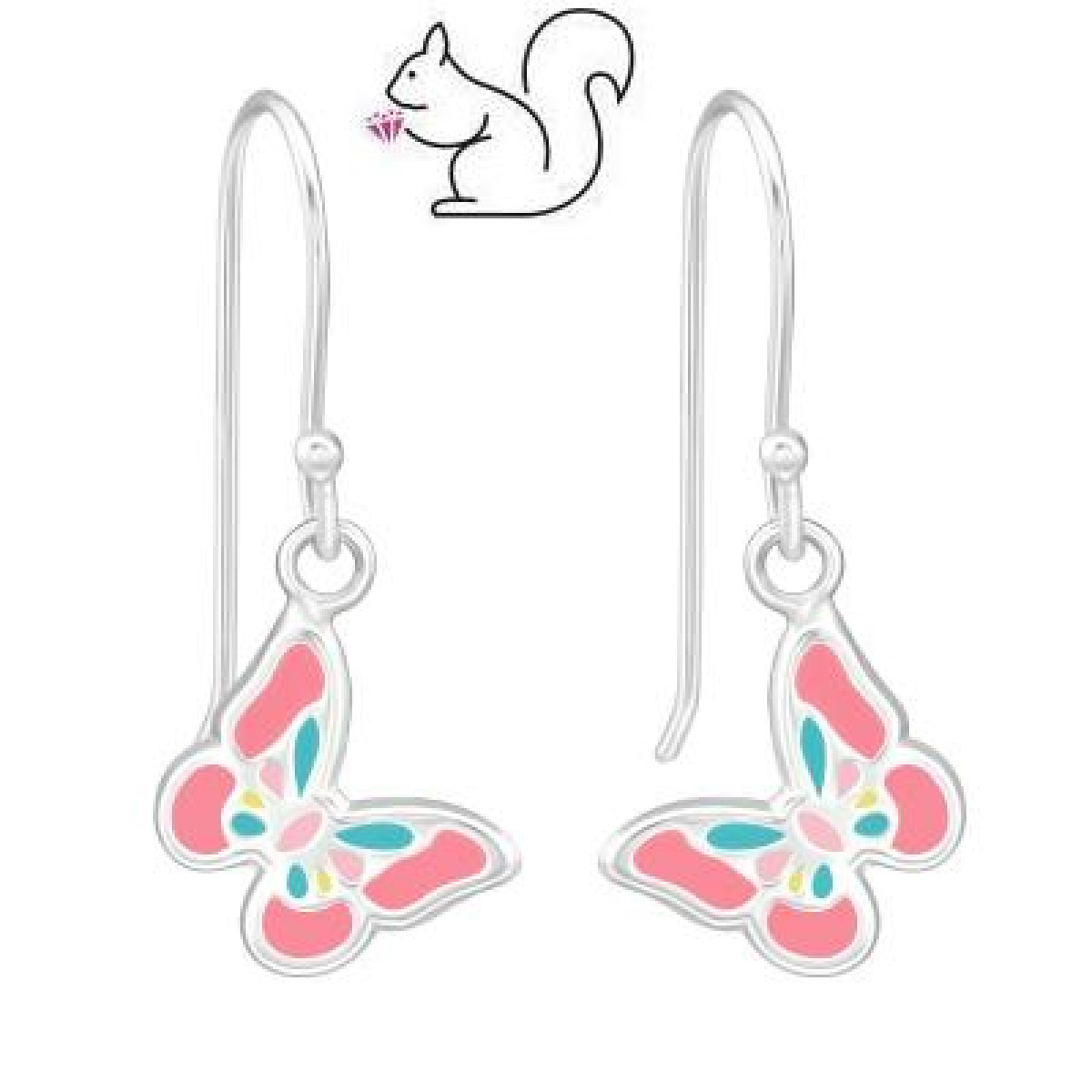 Színes pillangós akasztós ezüst gyerek fülbevaló