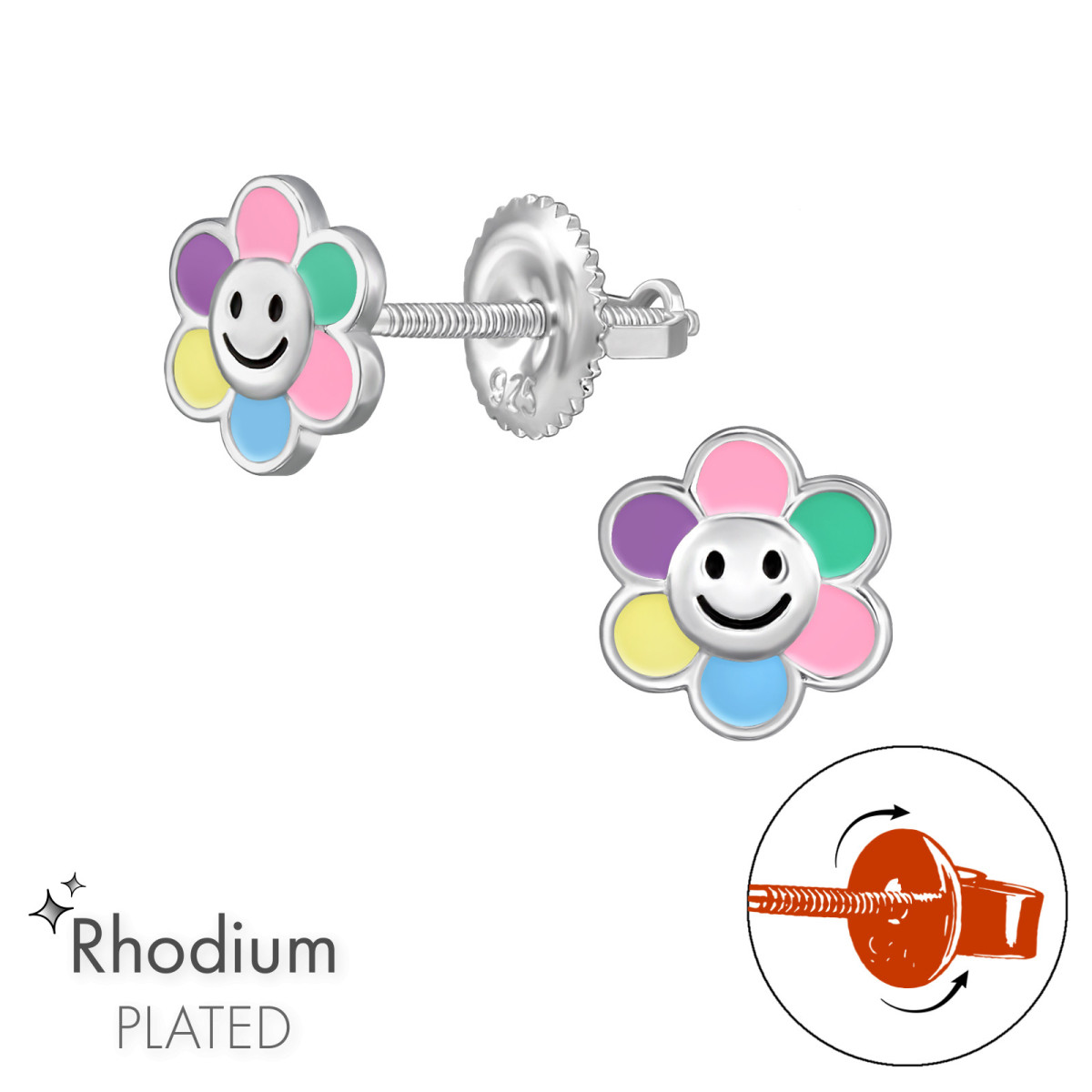 Színes Virág Csavaros Ezüst Stift Gyerekfülbevaló