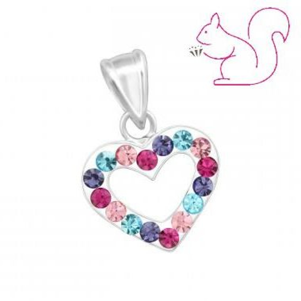 Szív ezüst medál, színes köves ezüst ékszer akasztóval