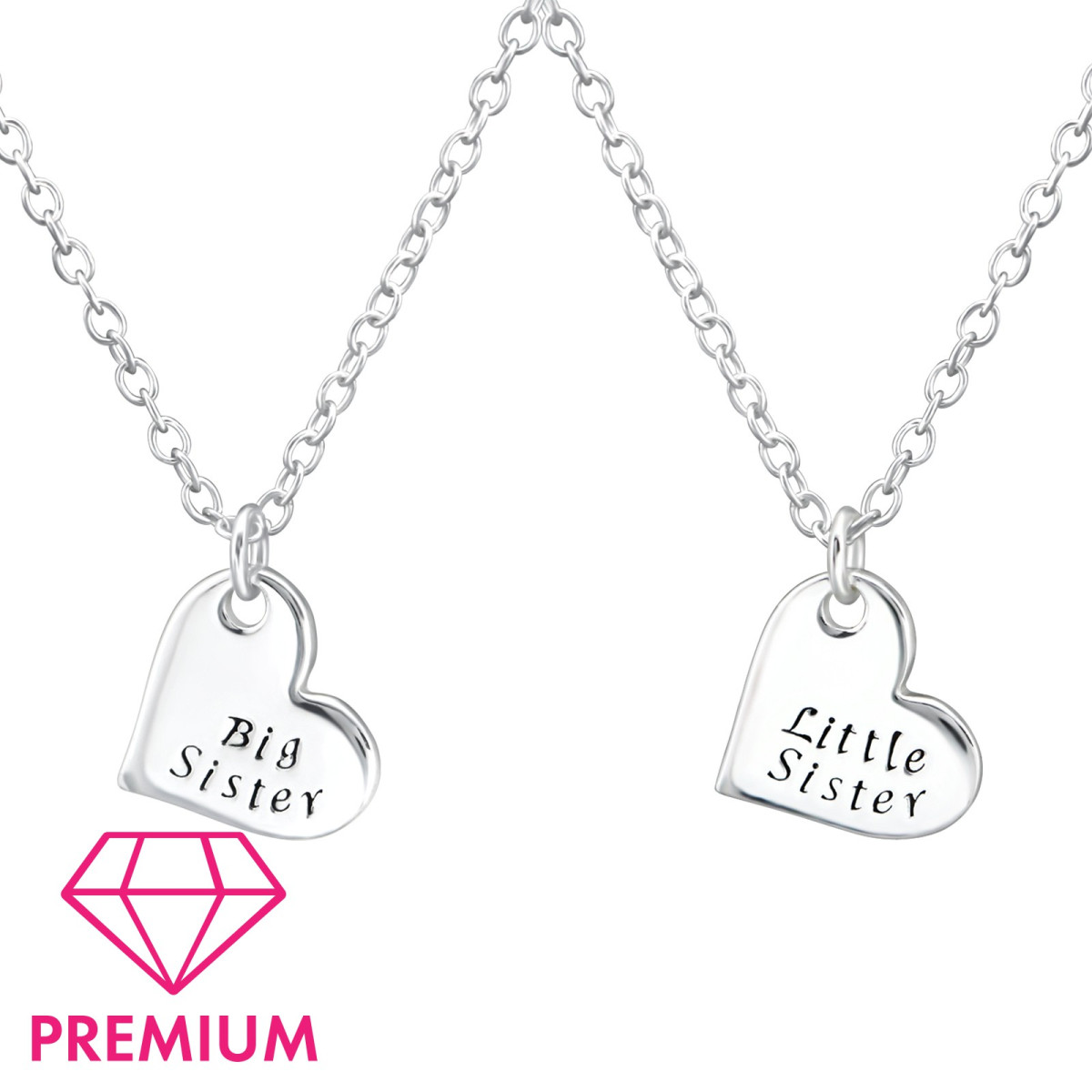 Big sister és Little sister feliratos szíves gyerek prémium ezüst nyaklánc 2 db-os szett