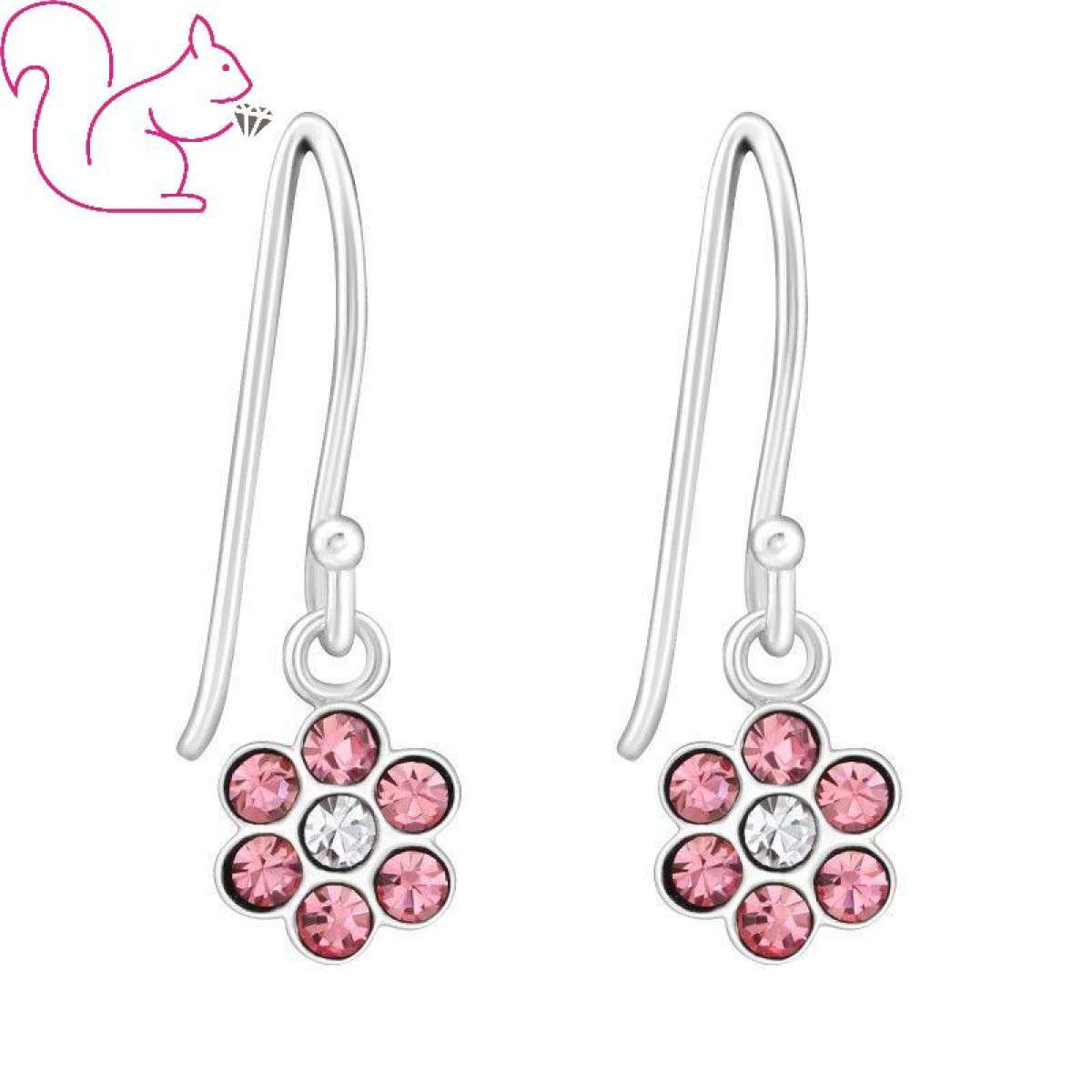 Virágos beakasztós ezüst fülbevaló, rózsaszín köves
